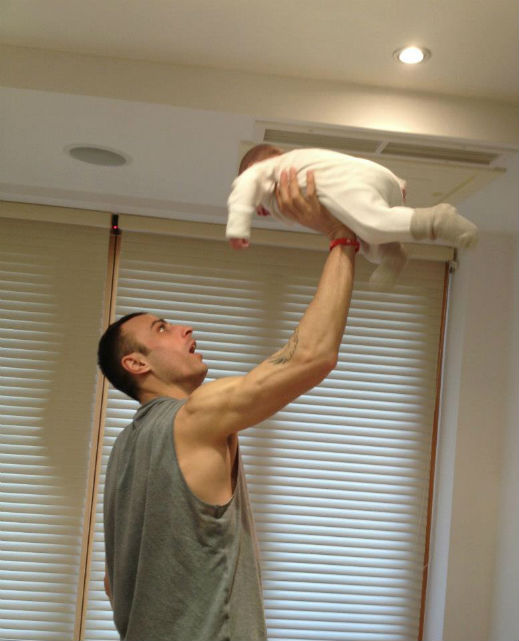 Берба явно тренира за бицепси като вдига бебето Елиа във въздуха. Феновете на футболиста останаха очаровани от фотото, което за минути обиколи новинарските сайтове. А почитателите на звездата коментираха на воля снимката.
