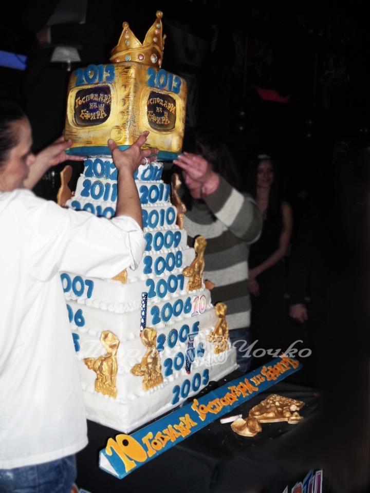 Изненада беше и тортата за рождения ден. Тя бе толкова голяма, че се наложи сладкари да я сглобяват на място, тъй като иначе не може да се пренесе.