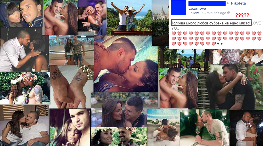 Подобаващо, колажът съдържа и подигравателния коментар “Толкова много любов, събрана на едно място”. Очевидно гаврата е засегнала сериозно Николета, защото само минути, след като се появи, лично плеймейтката изтри колажа.