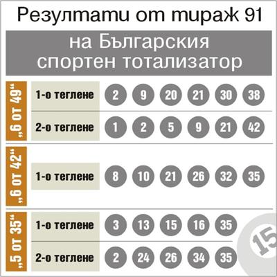 За тазвечершния тираж натрупаната сума бе близо 8,5 милиона лева. Това означава, че трябваше да се задържи джакпота още само 2 тиража, за да се постигне насищане.